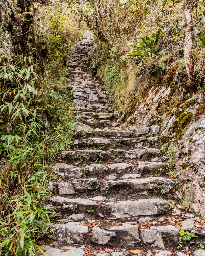 We wake up at 4:00 a.m. to leave Wiñaywayna and, after approximately one hour of hiking, arrive at Inti Punku or Sun Gate (2,750 m / 9,022 ft), following a flat stone trail along the edge of the mountain jungle, where we can enjoy the sunrise.